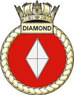 Membros da tripulação do navio levantaram a insígnia branca, pela primeira vez a bordo do Diamond, quando o Comodoro da Marinha Real Steve Brunton aceitou formalmente o navio em nome do Ministério da Defesa, em Portsmouth, onde se reunirá aos destróieres HMS Daring e HMS Dauntless.