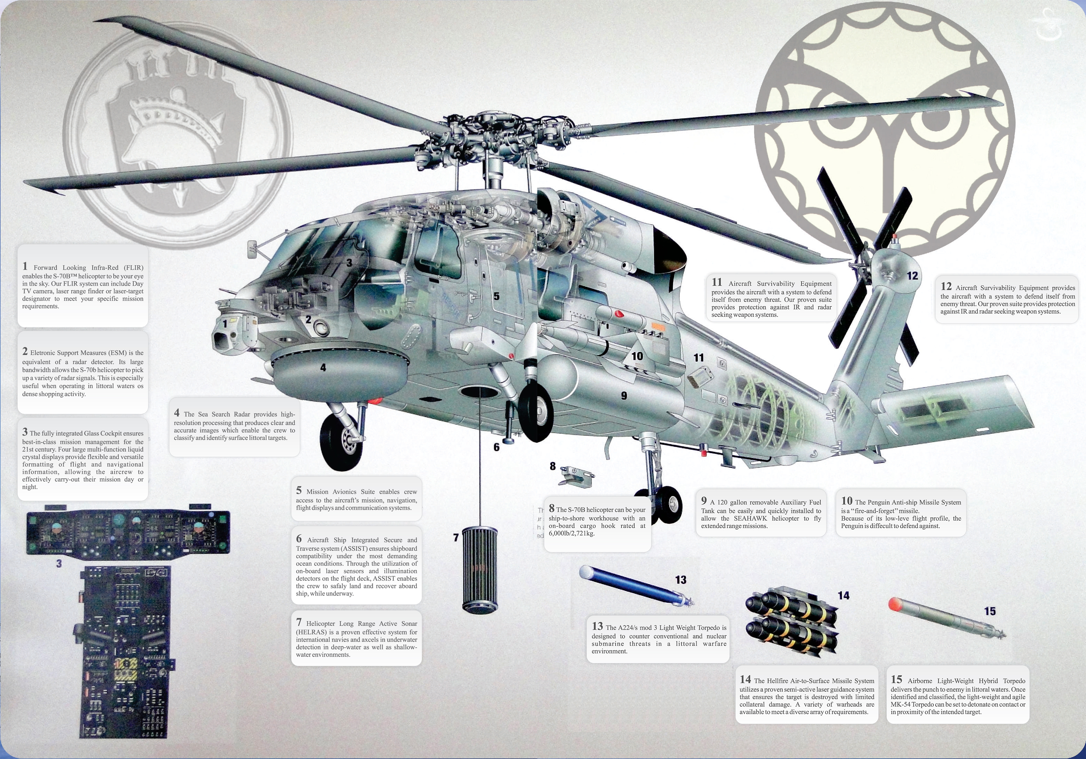 Sua principal missão será a guerra antissubmarino (ASW) e utilizará o sonar DS 100 HELRAS (Helicopter Long-Range Active Sonar), torpedos MK.46 e cargas de profundidade. Para missões de guerra ar-superfície (ASuW) utilizará o seu radar AN∕APS-143(C)V3 e mísseis AGM 119B Penguin MK2 MOD7, com alcance de cerca de 18MN e guiagem IR.