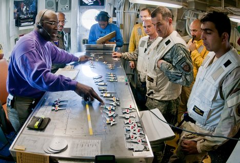 Após 70 anos de uso o sistema Ouija, usado para controlar o posicionamento de aeronaves no convés dos porta-aviões americanos, será substituído por um programa de computador. A mesa consiste de um modelo em escala 1:192 do convés do porta-aviões com aeronaves em escala 1:192. O Ouija foi desenvolvido na Segunda Guerra Mundial. A mesa também indica a situação da aeronave (combustível, armas, esperando para ser levado para o hangar ou pronto para decolar) com o uso de parafusos de várias cores empilhados acima do modelo da aeronave. Outra mesa mostra o posicionamento no hangar.