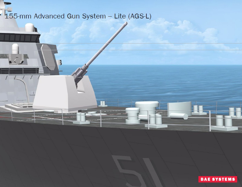 Com o cancelamento do programa DD-1000, para produzir os novos contratorpedeiros da US Navy, foi reiniciada a produção dos contratorpedeiros DDG-51. Os novos navios devem receber uma versão menor do canhão naval AGS de 155mm. O canhão será chamado de AGS-Lite (AGS-L). O AGS-L manterá o canhão de 155mm e os projéteis guiados LRLAP, mas em um carregador menor, com razão de tiro de 6 tiros por minuto (contra 18 tiros por minuto do AGS) e uma torreta menos furtiva. O objetivo é diminuir o peso de 100 toneladas para 51 toneladas (ainda assim o dobro do peso do canhão Mk45 Mod 4).