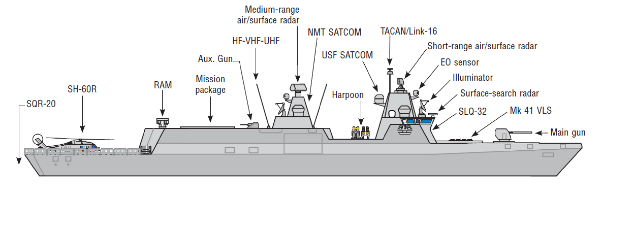 A nova escolta teria cerca de 5 mil toneladas. Para defesa antiaérea seria armado com mísseis ESSM e RAM, com opção de levar o SM-2/6. Os mísseis Harpoon seriam usados em missões anti-navio. Um canhão Mk 45 de 127 mm daria capacidade de Apoio de Fogo Naval que não está disponível nos LCS. Os Tomahawk seriam usados para ataque terrestre.