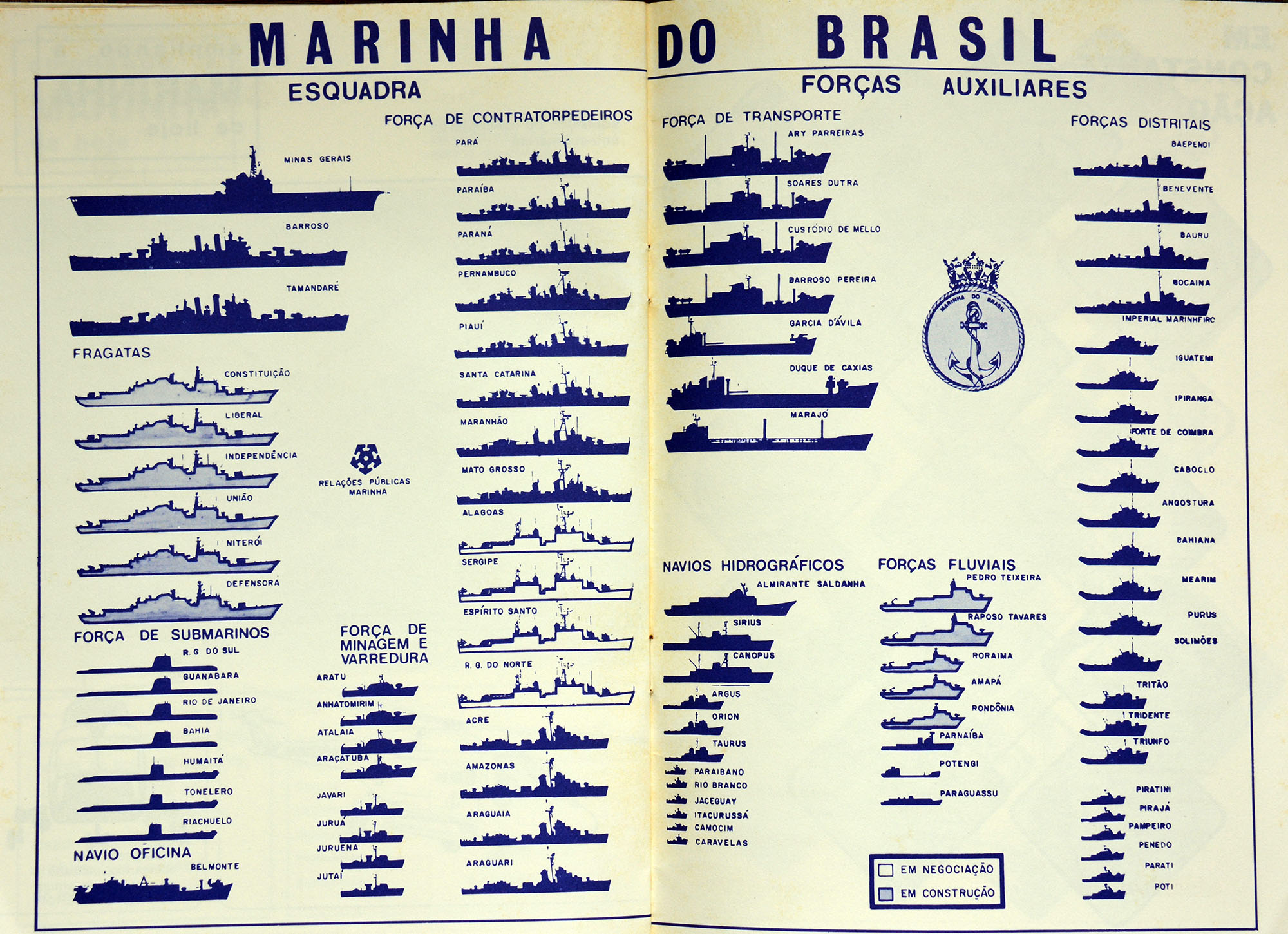 Um verdadeiro achado, gostei principalmente do quadro com as silhuetas dos meios operativos que mostra entre muitas outras coisas: – as diferentes silhuetas do Barroso e Tamandaré; – o Allen M Sumner não beneficiado pelo FRAM, o Mato Grosso mas a silhueta mostra corretamente o lançador do seacat retirado do antigo Mariz e Barros; – os 4 NVs novos, os outros 2 seriam incorporados apenas em 1975; – os 4 Allen M Sumner modernizados que ainda estavam em negociação e que efetivamente vieram em 1973. O único reparo que faria seria quanto aos Oberons que ainda não haviam sido recebidos… Read more »