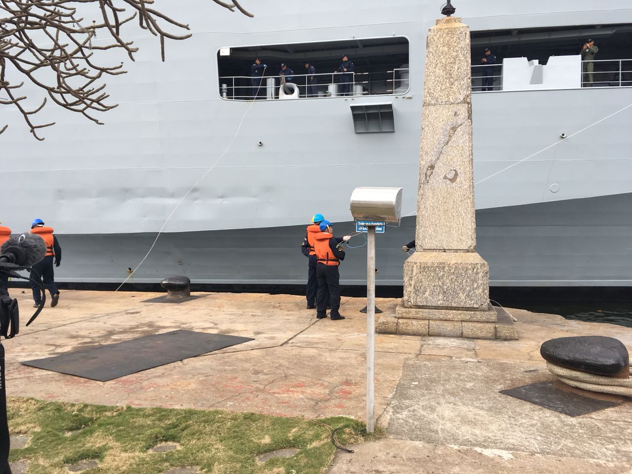 O PHM Atlântico atracou no Arsenal de Marinha do Rio de Janeiro às 13h49.