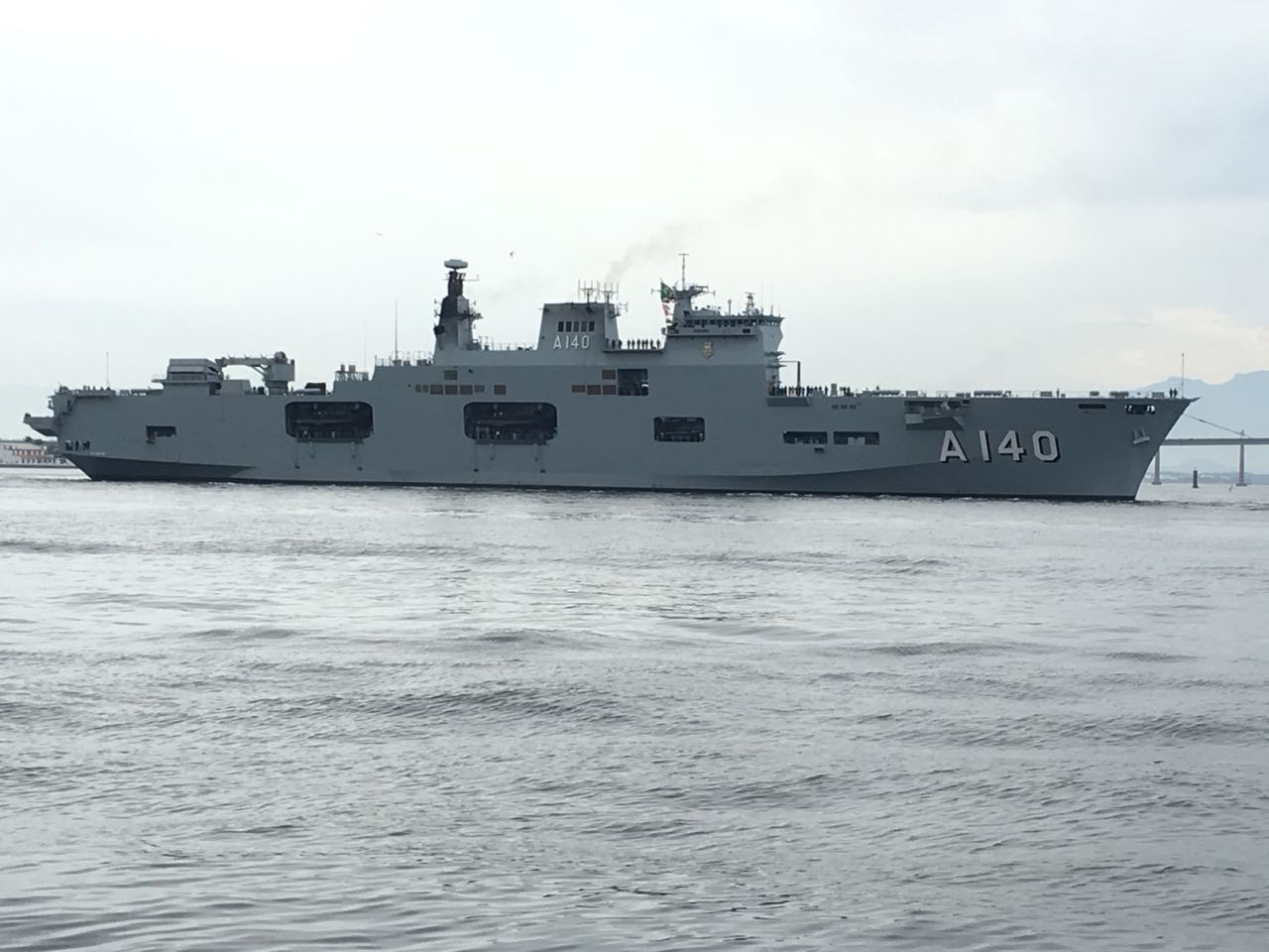 Nosso editor Guilherme Poggio, a bordo do Navio Doca Multipropósito (NDM) Bahia desde ontem, está enviando imagens em tempo real do Desfile Naval pela orla carioca em homenagem à chegada do Porta-Helicópteros Multipropósito (PHM) Atlântico – A140.