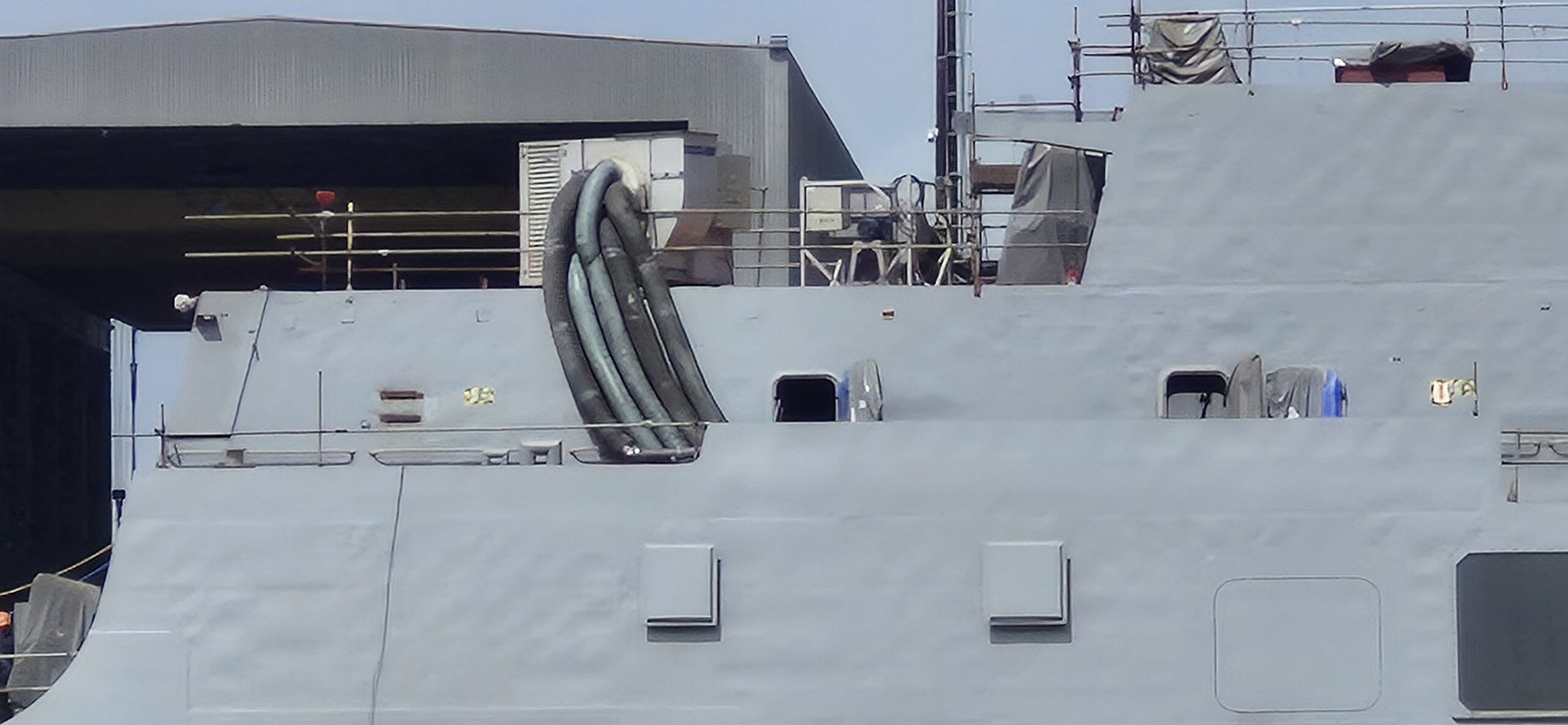 Bom dia Jugger; Ali foi pintado de preto pois se vc observar a fragata não possui chaminé, todas as descargas de gases dos MCPs/MCAs são pelo costado, e para não deixar o costado do navio chamuscado de preto pelo Diesel queimado pelos MCPs/MCAs foi pintada esse formato trapezoidal de preto para evitar que isso aconteça. Obs: alguns reclamaram aqui no blog que essas descargas estavam muito acima da água, mas o navio ainda não está navegando a plena carga (munição/mantimento/combustível ) pois ainda está em fase de testes e se houver necessidade de uma docagem emergencial tudo fica mais rápido… Read more »