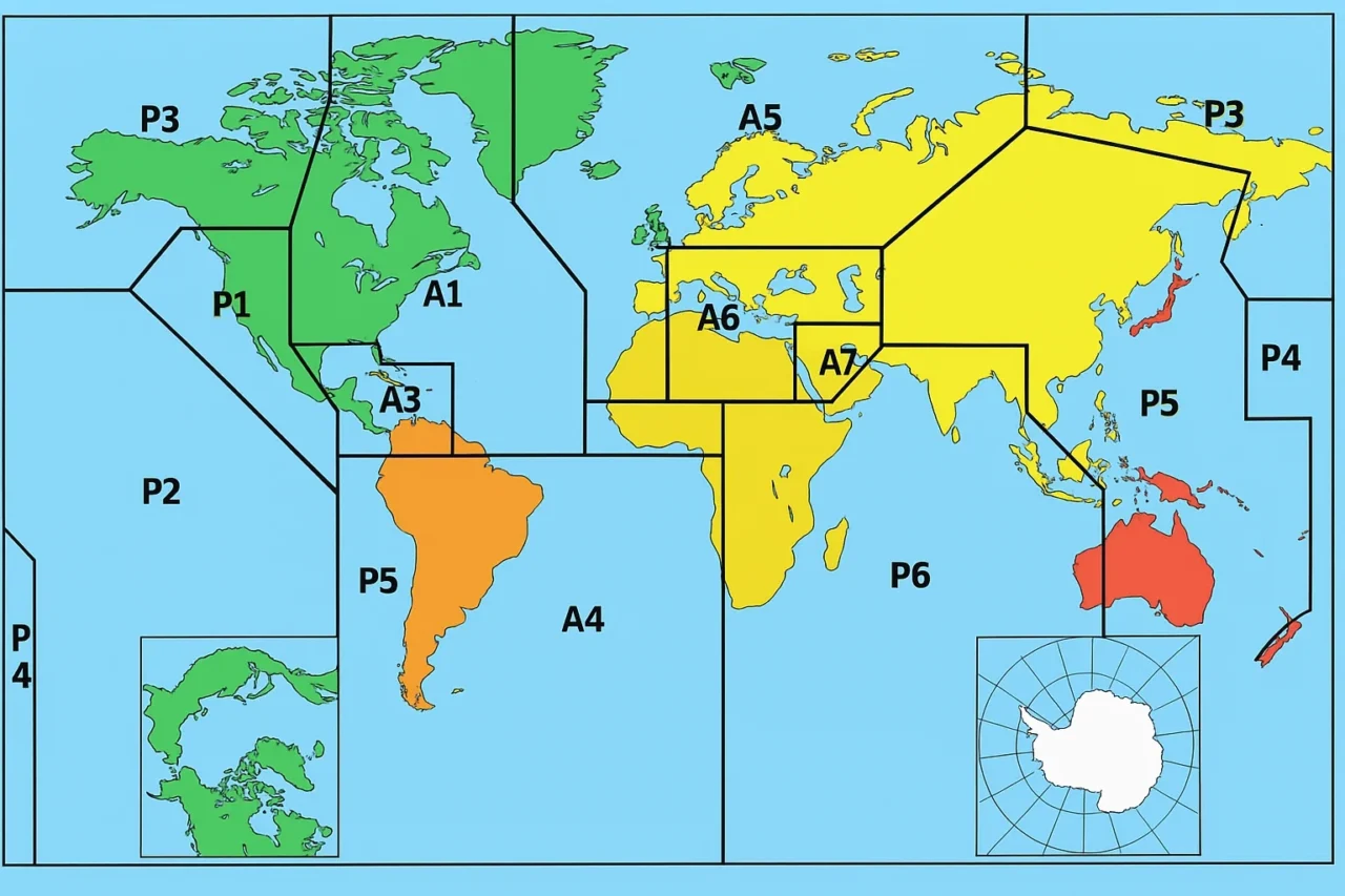 A Figura 1 mostra os Códigos de Áreas Oceânicas da Marinha dos EUA, usados para descrever geograficamente cada resposta a crises.